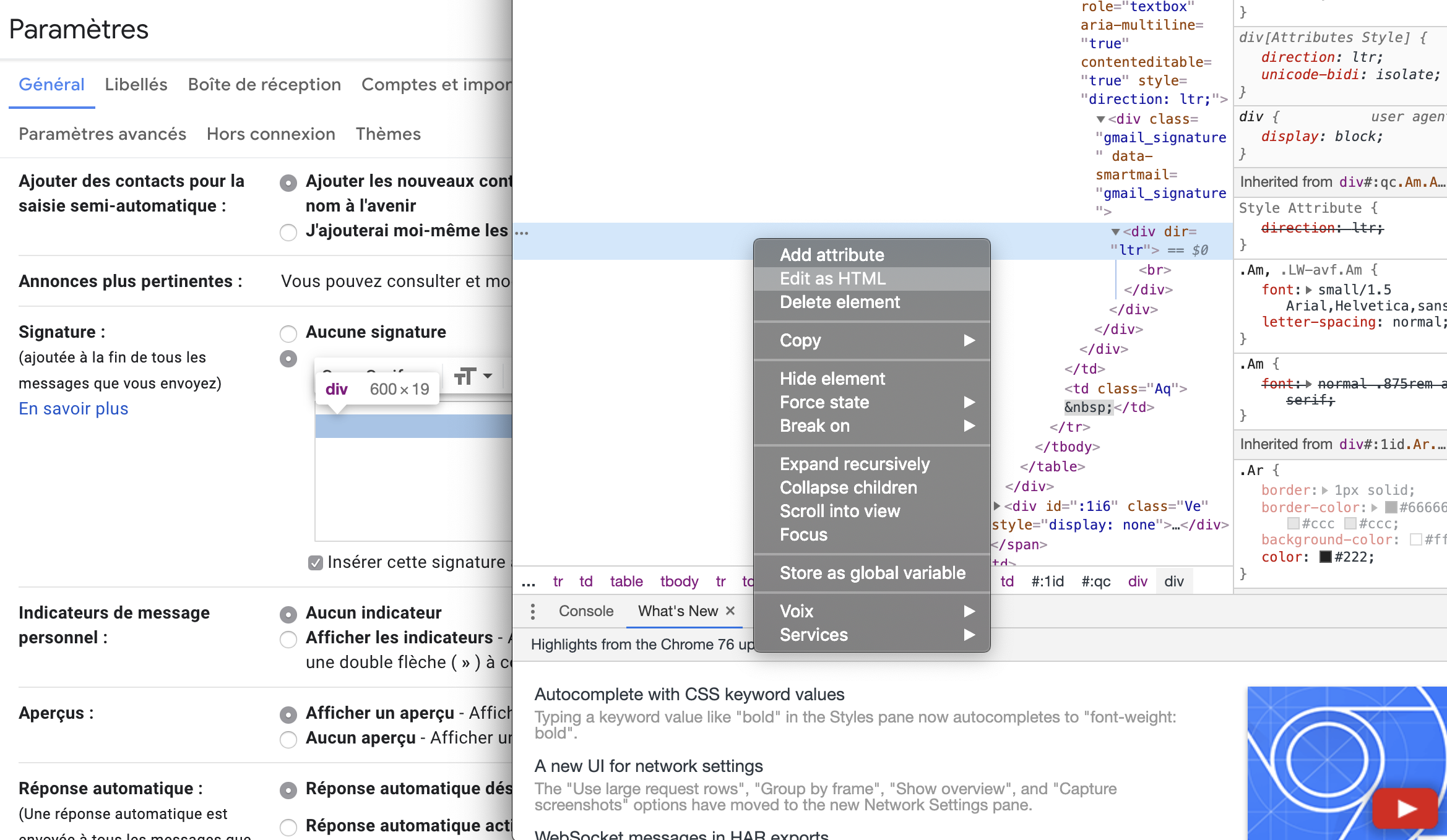 Puis créer une nouvelle signature